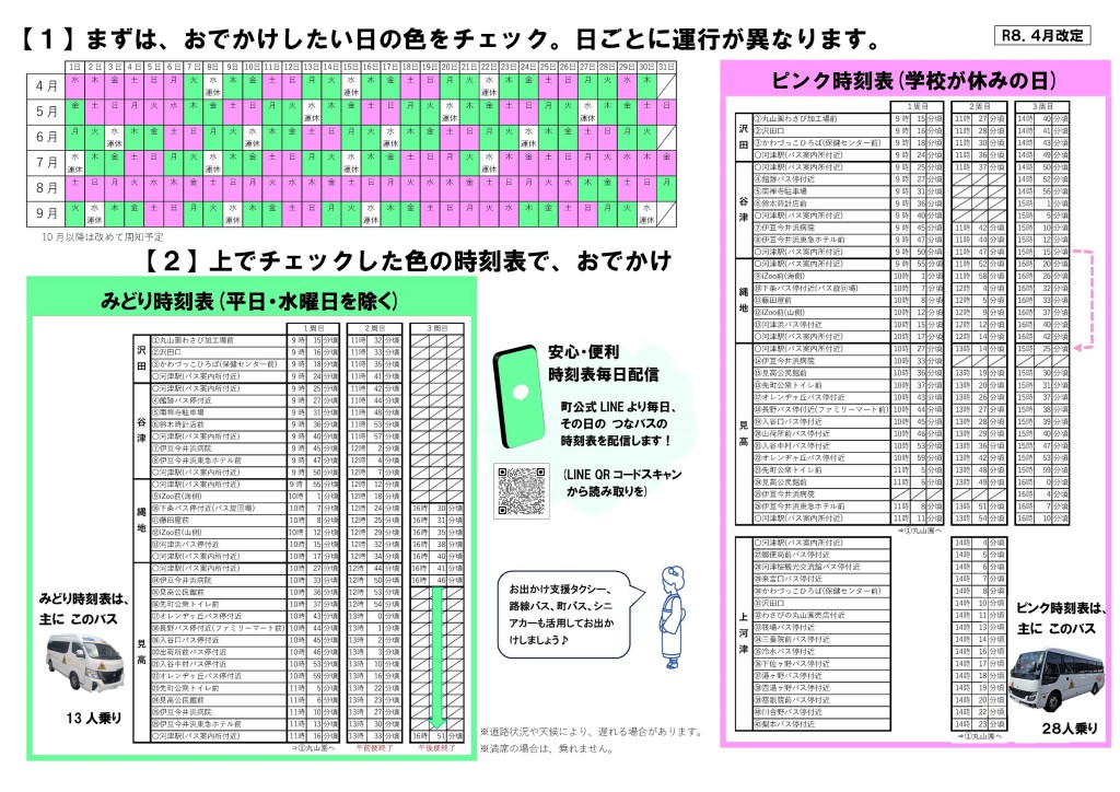 生活支援体制整備事業として、スクールバスの空き時間に無料で利用できる「つなげる支援バス」(通称つなバス)が運行します。